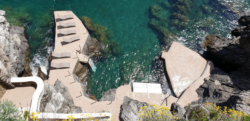 The property has private gardens and its own private access to the sea via a stairway of only 130 steps, through bougainvillea covered terraces, lemon, and orange groves you reach the lawn with the relaxing area and the solarium. A small kitchen unit, a sauna, and a children's area are set into a natural cave. A changing room together with a toilet and sink is also available. The swim spa pool with water massage is set in the most panoramic viewpoint just a few steps below this area. Down a few steps, you find a waterfront covered dining terrace where guests can enjoy stunning al fresco meals. And then the Mediterranean sea….